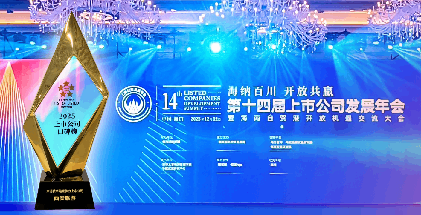 作為扎根西安的文旅企業(yè),西旅股份公司立足古都文旅資源稟賦,依托“千年古都”的城市文化定位,深耕“文旅+消費(fèi)”融合賽道,推動(dòng)傳統(tǒng)旅游服務(wù)向智慧化、品質(zhì)化升級(jí),成為西北文旅消費(fèi)的核心力量。本次殊榮既體現(xiàn)了公司在消費(fèi)場景創(chuàng)新、細(xì)分市場機(jī)遇捕捉上的引領(lǐng)能力,也印證了資本市場對(duì)其發(fā)展?jié)摿Φ母叨日J(rèn)可。