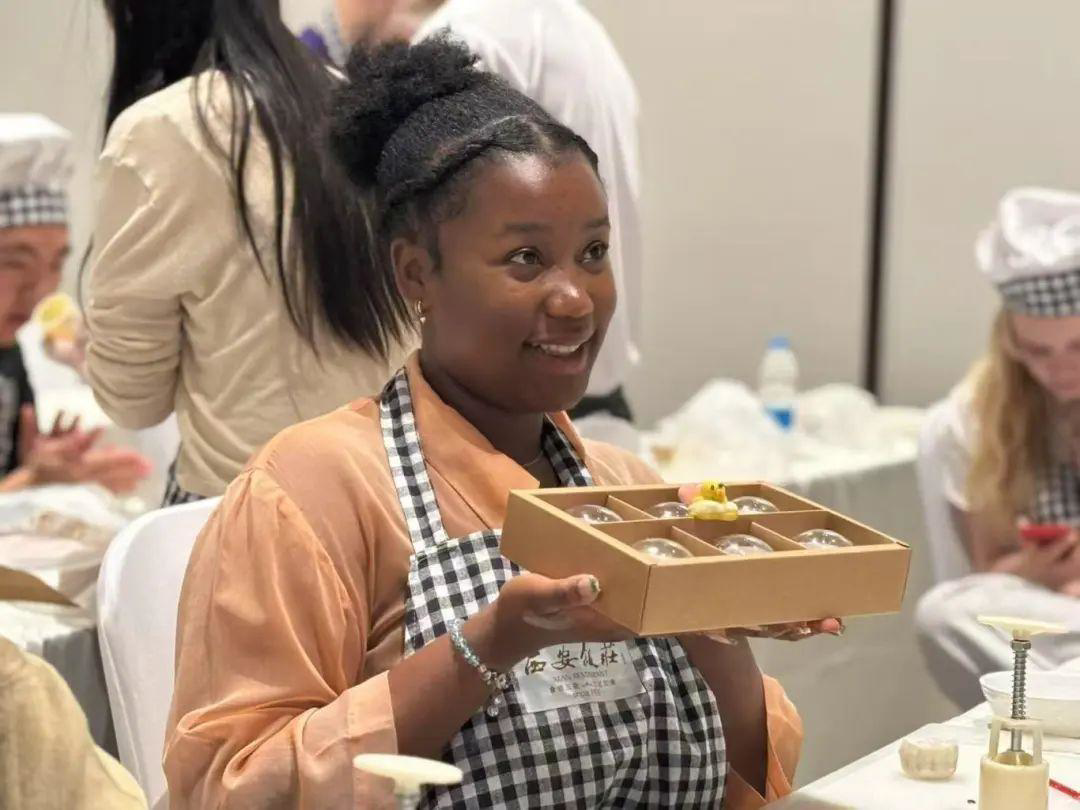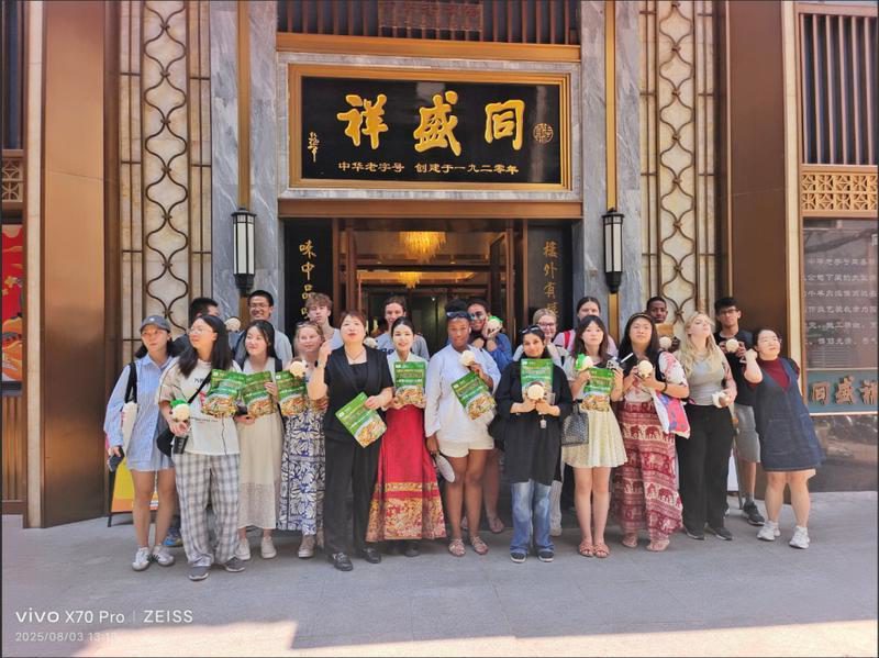文明的深度對話,同樣在西安街頭巷尾升騰的煙火氣中熱烈展開。訪學(xué)團(tuán)走進(jìn)西安飯莊、德發(fā)長餃子館、同盛祥、清雅齋、西安烤鴨店等承載著城市記憶的中華老字號。在非遺大師的引導(dǎo)下,青年學(xué)子們親手掰開一塊塊坨坨饃,感受饃粒大小對湯汁吸收的微妙影響;嘗試捏出形態(tài)各異的花樣餃子,體驗指尖上的匠心……這不僅是味蕾的盛宴,更是理解西安生活美學(xué)、感悟中華飲食“食不厭精,膾不厭細(xì)”智慧的獨(dú)特課堂。
