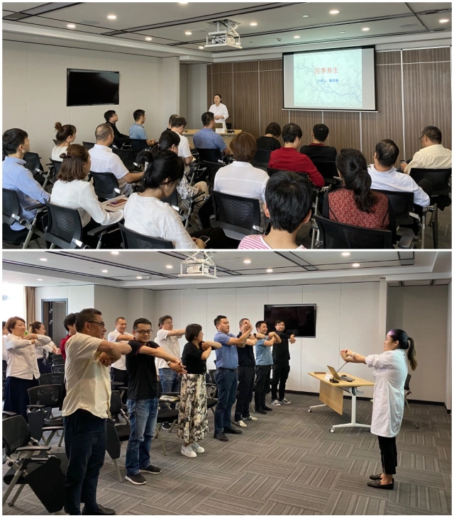 義診活動主要包括把脈問診,普及健康知識,傳授保健技能,前來問診、咨詢的員工絡(luò)繹不絕,陳醫(yī)生針對不同情況給予診療建議。同時,陳醫(yī)生還圍繞四季養(yǎng)生知識進(jìn)行專題講座,宣傳中醫(yī)養(yǎng)生理念,現(xiàn)場教學(xué)實用保健操,為大家送去貼心健康服務(wù)。