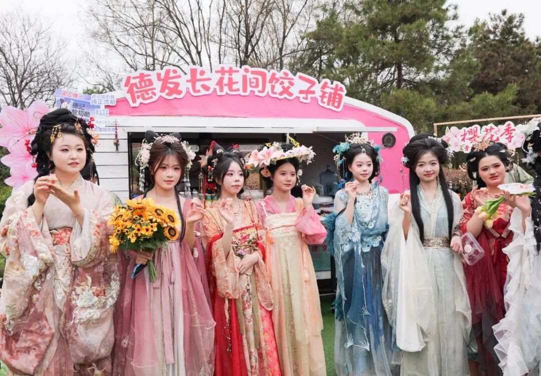 在櫻花爛漫的青龍寺,唐詩飛花令趣味上演。詩人NPC與游客現(xiàn)場對詩接龍,贏取櫻花酥、青團、祈福柳枝與春日飲品,在繁花之下赴一場浪漫詩意之約?,F(xiàn)場更有老字號非遺技藝展演精彩亮相,傳統(tǒng)匠心與春日詩意相映成趣,盡顯長安獨有的風雅食韻。